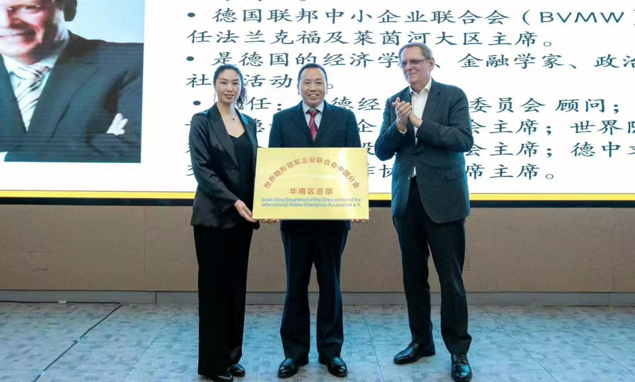 會上,世界隱形冠軍企業(yè)聯(lián)合會主席弗希德曼和秘書長溫妮為聯(lián)合會中國區(qū)副會長兼華南區(qū)首席代表羅永輝進行了隆重的授牌儀式。